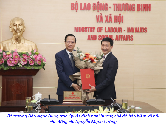 Theo quyết định của Bộ LĐTBXH, đồng chí Nguyễn Mạnh Cường được nghỉ hưởng chế độ bảo hiểm xã hội kể từ ngày 01/6/2022.
