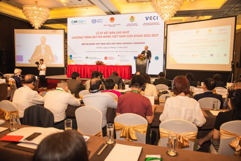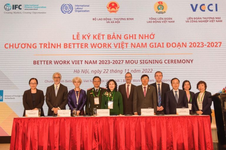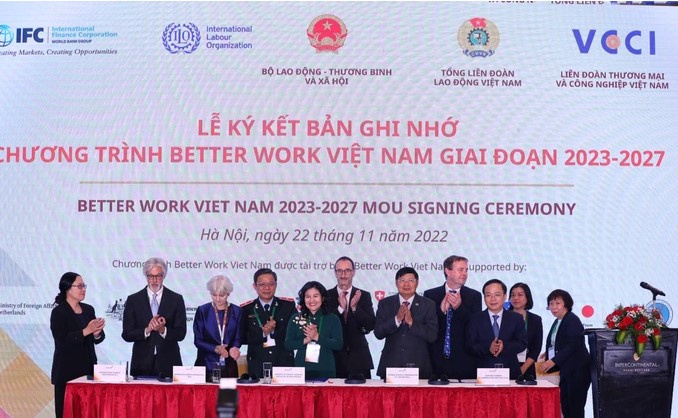 Ngày 22/11, tại Hà Nội, Chương trình Better Work Toàn cầu và Better Work Việt Nam đã tổ chức Lễ ký kết Bản ghi nhớ giữa Bộ Lao động – Thương binh và Xã hội (Bộ LĐTBXH), Liên đoàn Thương mại và Công nghiệp Việt Nam (VCCI), Tổng Liên đoàn Lao động Việt Nam, Tổ chức Lao động quốc tế (ILO) và Tổ chức Tài chính quốc tế (IFC), đồng thời Họp khởi động chiến lược cấp cao Chương trình Better Work giai đoạn 2023-2027. Thứ trưởng Bộ LĐTBXH Nguyễn Thị Hà tham dự Lễ ký kết.