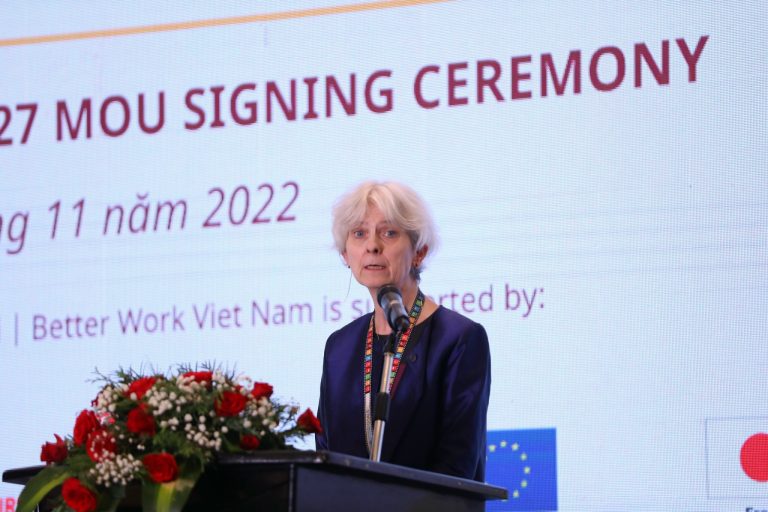 Phát biểu tại Lễ ký kết, Giám đốc ILO tại Việt Nam, Bà Ingrid Christensen chia sẻ, “Hiệu quả của Chương trình Better Work Việt Nam đã chứng minh việc thúc đẩy đối thoại xã hội và nâng cao nhận thức về bình đẳng giới tại nơi làm việc chính là yếu tố then chốt để cải thiện điều kiện làm việc và nâng cao thu nhập cho hàng trăm nghìn người lao động trong ngành may mặc và da giày.”