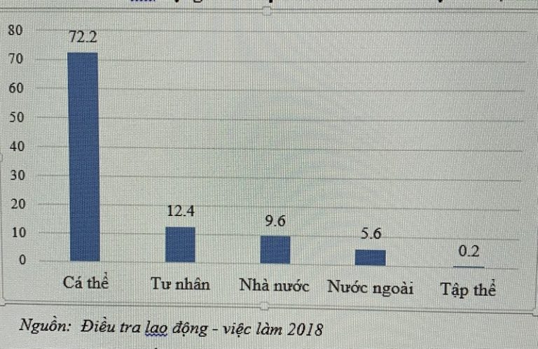Số liệu trên Hình 2 cho thấy loại hình kinh tế cá thể/cơ sở sản xuất kinh doanh cá thể chiếm đa số (72,2% tương ứng với 39,2 triệu lao động) ở Việt Nam. Các loại hình kinh tế khác có tỷ trọng không lớn. Tỷ trọng lao động đang làm việc của khu vực tư nhân và vốn đầu tư nước ngoài tuy đã tăng lên song chiếm tỷ trọng không cao (tương ứng là 12,4% và 5,6%). Loại hình kinh tế tập thể mặc dù giữ vai trò chủ đạo trong những năm trước Đổi mới nhưng nay chiếm một tỷ trọng rất nhỏ (0,2% tương ứng với 81,5 nghìn lao động).