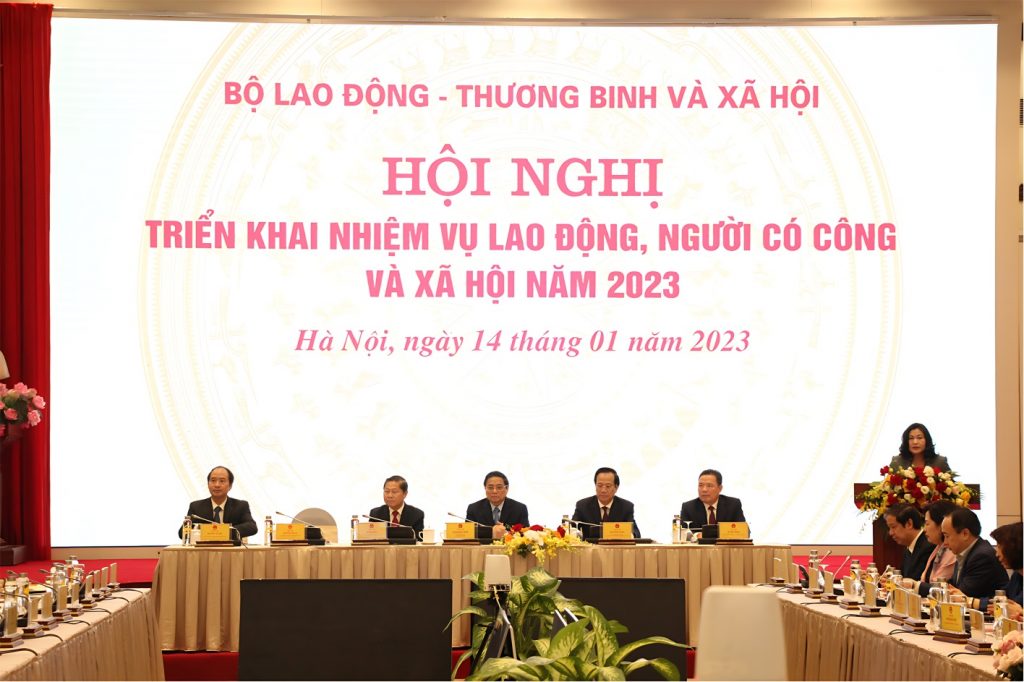 Sáng 14/01, Bộ Lao động – Thương binh và Xã hội (LĐTBXH) tổ chức Hội nghị trực tuyến toàn quốc triển khai nhiệm vụ lao động, người có công và xã hội năm 2023. Thủ tướng Chính phủ Phạm Minh Chính và Bộ trưởng Bộ LĐTBXH Đào Ngọc Dung đồng chủ trì hội nghị. Cùng dự hội nghị có Chủ nhiệm Uỷ ban Xã hội của Quốc hội Nguyễn Thúy Anh, Chủ nhiệm Uỷ ban Văn hóa – Giáo dục của Quốc hội Nguyễn Đắc Vinh, Bộ trưởng Giáo dục – Đào tạo Nguyễn Kim Sơn, Thống đốc Ngân hàng Nhà nước Nguyễn Thị Hồng, Tổng Biên tập báo Nhân dân, Phó Trưởng ban Tuyên giáo Trung ương Lê Quốc Minh; cùng lãnh đạo các bộ, ban, ngành Trung ương; lãnh đạo các tỉnh, thành phố trực thuộc Trung ương.